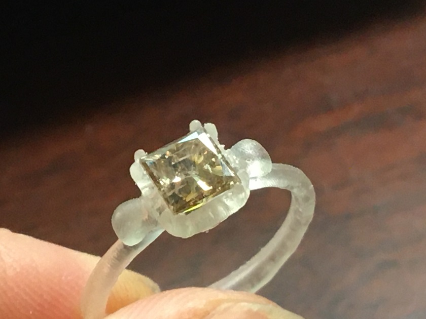 ダイヤモンドの角は鋭く鋭敏なため、割爪を変形させた2本で角を固定。