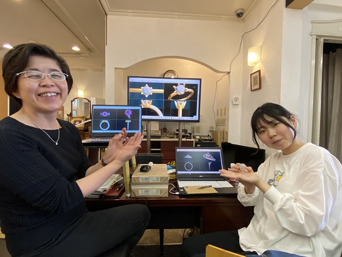 デジタルジュエリー®デザイナーとして仲間入りしました。 最速の域に入るでしょうか!! 岡山エイコー堂の西原佳子さん、三宅佐和さん がデジタルジュエリー®デザイナーとして仲間入りしました。 スタートしたのが今年の3月24日! それからひと月ちょい。 遅晩、早朝から送られてくるLINEにはJCAD画面のスクショに??マーク…。 しかし会うたびに努力の痕が見え、毎日JCADを開きコソ練を実践しておられました。 また、 佐和さんは現行高校2年生!Z世代の襲撃がやってきますよ! 関連投稿: 3Dプリント…1つも6つも同じなので… 普通に見えて実はとっても贅沢。マリッジリング作製 実にサポートノウハウがモノを言う!! 変わることも大事ですが、変わらない大切さも。。。 2022年5月5日 投稿先 お知らせ, デジタルジュエリー®, ニュース, 店主からのメッセージ エイコー堂、西原佳子 デジタルジュエリー®デザイナー、プロ講座、ジュエリースクール ← 過去の投稿へ 次の投稿へ → コメントを残す コメントをキャンセルメールアドレスが公開されることはありません。 ※ が付いている欄は必須項目ですコメント ※ 名前 ※ メール ※ サイト 次回のコメントで使用するためブラウザーに自分の名前、メールアドレス、サイトを保存する。 上に表示された文字を入力してください。 Δ