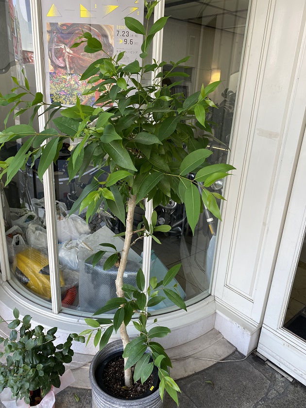 店頭の観葉植物も暑さか水かで先端がシンニャリ…
