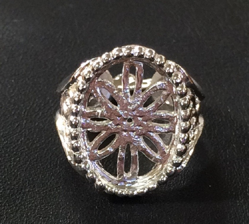リング下側にある↓湯口、湯道;溶けた地金が流れこみこの形になったことがわかると思います。