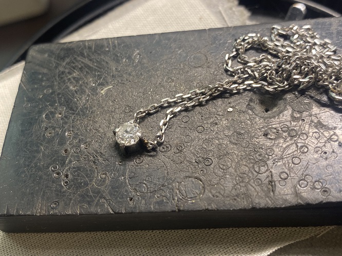 このダイヤモンドのペンダントを婚約指輪へと作り替えです。
