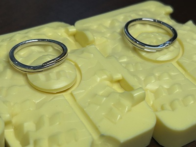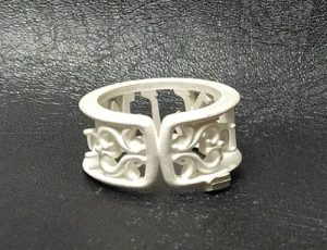 3Dプリントした枠をゴム型、石膏埋没…貴金属へ完成。