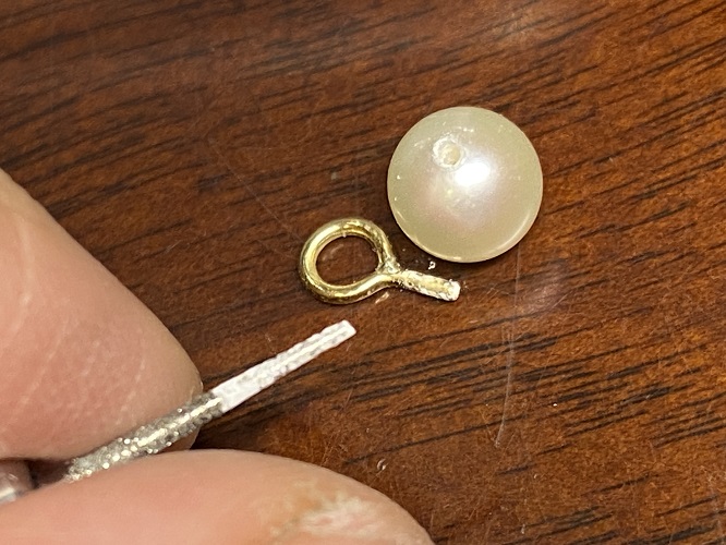 まさに、輪っかだけが真珠の頭にくっついた感じの金具。