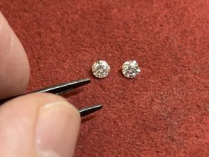 ピアスのダイヤモンドを分け分けし