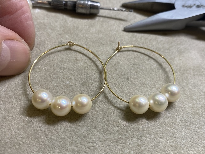 このピアスは実際に着けると耳たぶ下3つが浮いて(ぶら下がって)見えるんですよ!