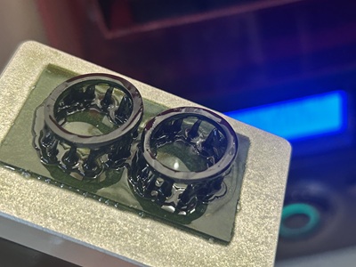 3Dデータを修正…サイズ#12のリング幅・リング厚みを変え原型を3Dプリント。プリント時間は1時間半ほど。