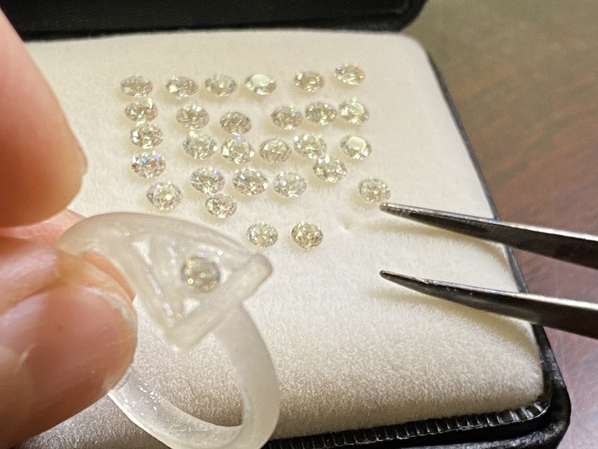 メンズリングのオーダーでセンターに1ピース配置。小さくても輝くダイヤモンドをお客様にピックアップしていただきます。。。