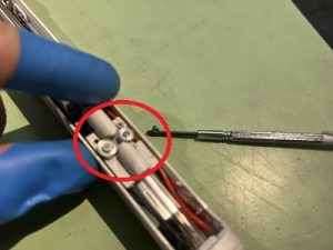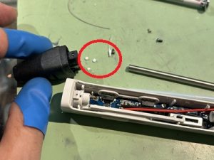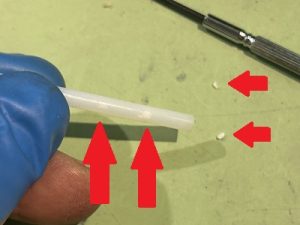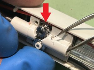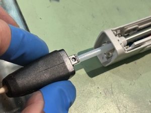 これこれ☟フィラメントのカスが詰まり、新たなフィラメントが挿入できない状態でした。