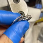 固定台へリングから枠をセットし、あっちこっちクルクルと回しながらダイヤモンドの石留め