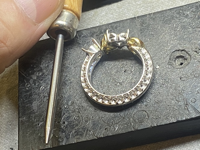 両サイド44ピースの石留を開始です。