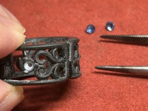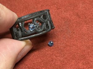 ここで誕生石のブルーサファイアを配置、セットしてみることに。
