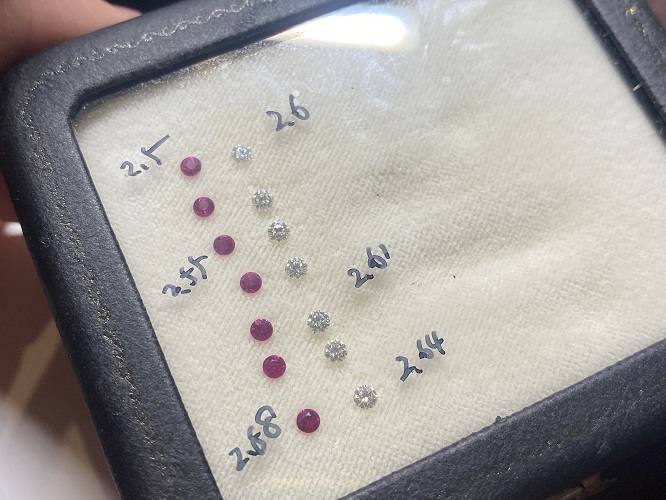 ルビーとダイヤモンドを交互に配置したロングチャームを製作していきます。