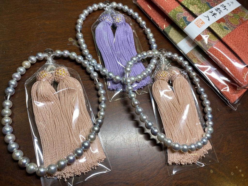 今回はグレー珠ロングを3本の片手念珠を製作できました。