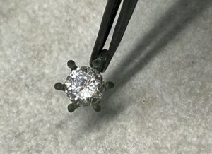 周囲6本の爪を均等に倒せばいい感じっ。 ★ダイヤモンドペンダント 2025年7月8日 最終更新日時 : 2025年7月8日 株式会社エファーナ 3Dプリント完成! これっ☟ 液体レジンを取り除き、サポートも切除すると☟ 形状確認☟ このダイヤモンドをセットしてみましょう。 周囲6本の爪を均等に倒せばいい感じです。 これで進めて行きましょう。 関連投稿: ➀完成する前にこの完成図っ!②早速、製作に入ります。➀②の順番、もう不安はありませんね。 おばあ様、そしてお母さまにも…。 石のサイズに合わせ工具も変化。道具様様です。★ブライダルリング 徐々に仕上がっている経過を まずは、お客様へ共有しながら製作です。