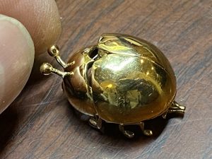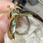 手を真っ黒にしながらバフルータ磨きに顕微鏡をのぞき込みながら石留め。