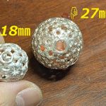 透かしの珠は桜の花びらを籠状に…中の空間に○○○を入れるデザイン。
