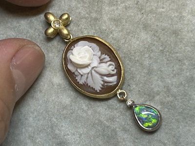 薔薇が掘られたカメオ素材、ペンダントへデザイン、完成です。