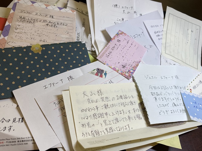 月並みですが、 皆様のお言葉を胸に。。。 2022年8月20日 最終更新日時 : 2022年8月20日 株式会社エファーナ けっして…完璧ですべてのご要望応えてこれた。。。とは言えませんが 戴いたメッセージに心が熱くなってきます。 今の時代、メールやLINEでのお言葉も多いですが 敢えて手書き! 月並みですが、 皆様のお言葉を胸に精進しますっ。。 関連投稿: ここはアナログですが デジタルをうまく癒合しご提案ですっ。 私がいないときにもお仕事をしてくれてるって とっても嬉しい事です。!! セミナー資料完成っ! この春仕様のピアスは気分を晴れやかにしてくれるでしょう!!