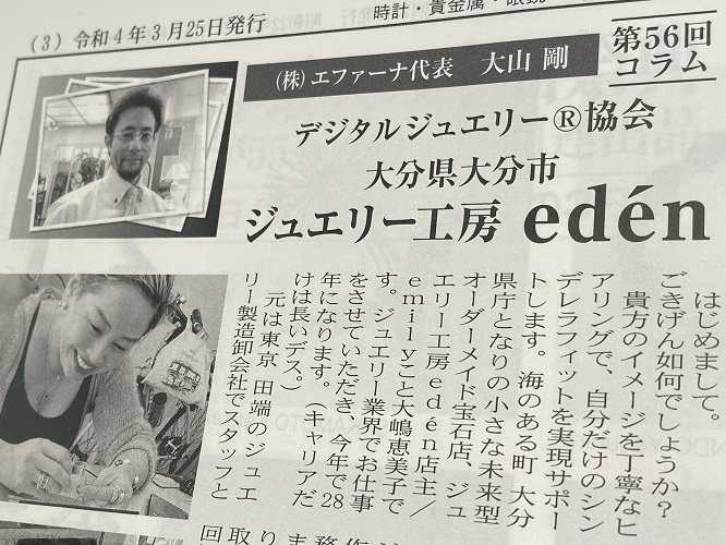 第56回業界新聞担当コラム; デジタルジュエリー®協会 大分県 ジュエリー工房edén