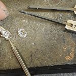サポートを切り外し、まずはシャトンにお預かりのダイヤモンドを入れ込んでみます。