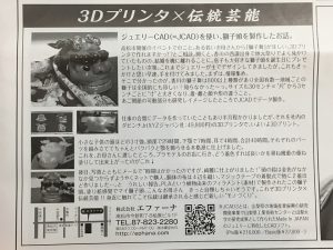 "業界新聞"担当コラム手もとに届きました。 今月はこのお題です。 3Dプリンタ×伝統芸能 ジュエリーCAD(=JCAD)を使い、獅子頭を製作したお話。 高松市開催のイベントでのこと。 ある若いお母さんから「獅子舞」がほし […]
