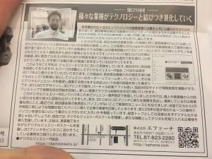 "業界新聞"担当コラム手もとに届きました。 第20回;様々な業種がテクノロジーと結びつき進化していく。 (以下本文↓) 先月開かれたトヨタとソフトバンクの提携発表には驚きと共に心躍らされるものがありました。 豊田章男社 […]