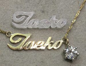 ネームペンダント! 贈り物や自分へのプレゼントにもとても人気があります。 という事で 今回は「Taeko」様。 字体はこちらを使います。 ↓ 3Dデータで作った文字を強度や接合部分を見ながらデータをいじっていきます。 [ […]