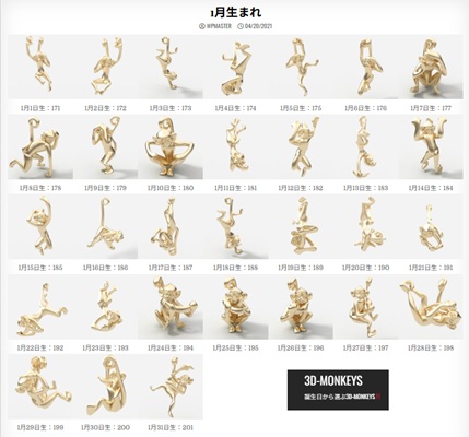 🐒誕生日から選ぶ3D-Monkeys 366日