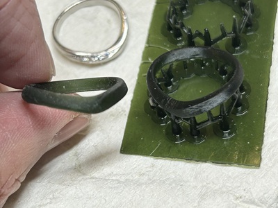 レバーを緩め余分な液体樹脂を拭き取り、まずは形状確認。