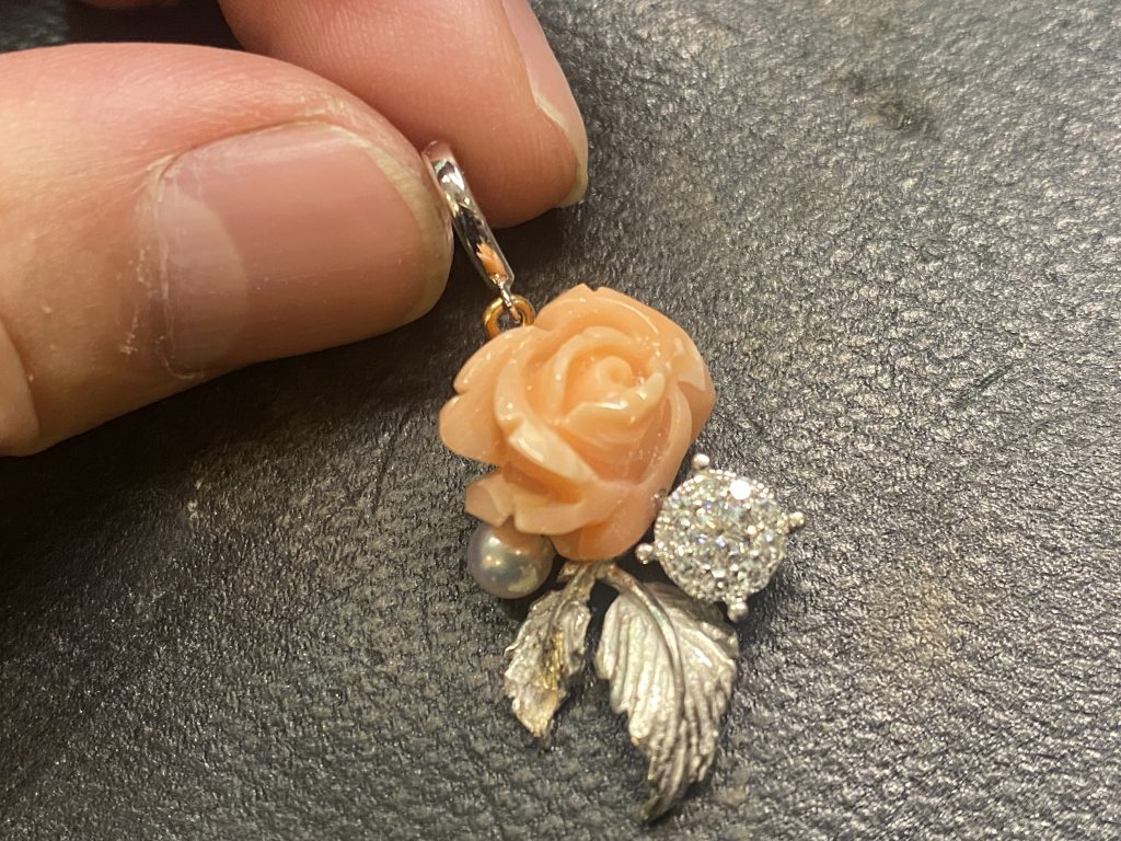 湖水真珠のネックレスに引っ掛けバランスを見ていきましょう!
