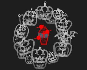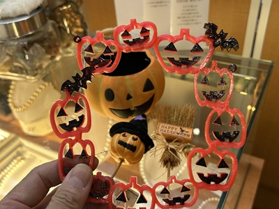 ハロウィーンで、楽しく…とショップ内のオーナメントは3Dプリントしてものが飾られています。