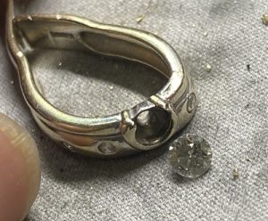 がっちり、しっかりと覆輪留めされたダイヤモンドを無事取り外し、完了! いくら硬いダイヤモンドとは言え、変な感じに力が加わってしまうと容易に欠けたり、割れたりします。☜ホントに!! これからさらにサイドに留められているメレ […]