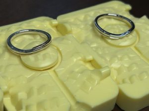 プラチナとゴールドのコンビリング… パーツ分けし製作進め ようやく完成ですっ! どうしていこうかと、これまた思案。☜7・16ブログ… 3Dプリントした枠をゴム型、石膏埋没…貴金属へ完成。 用意していたゴールドのパーツを両 […]
