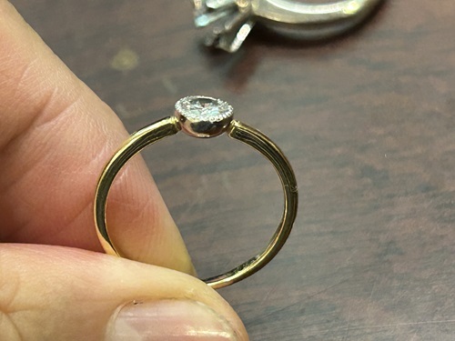 今回のポイントは、ダイヤモンドをカップ状の枠でやさしく包み込むこと。