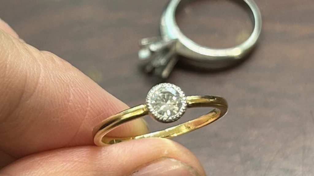枠から外して、もう一度輝く。ダイヤモンドリングのリフォーム製作工程(K18×プラチナのコンビ仕様)