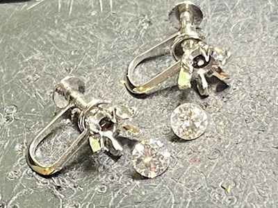 ご相談カウンターでお出しいただいたのは、今では使わなくなってしまったというダイヤモンドのイヤリング。