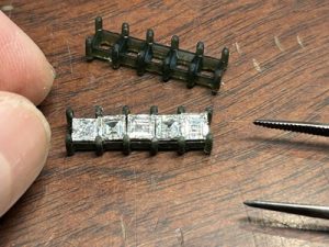 石座の形状確認から… 5ピース5様、微妙にサイズが違うので設計を整え3Dプリント ☟ 40分後…完成! この時点でいい感じです。 実際に使用するプリンセスカットのダイヤモンドをセットし… ここに配置☟ ほぼいい感じっ☺️ […]